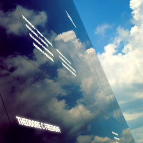 As the visitor approaches, the brilliant names appear to float eternally against the monumental reflection of the ever-changing Florida sky above.